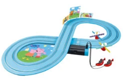 Eins, zwei, los geht die lustige Fahrt! Im neuen Carrera FIRST „Peppa Pig – Kids GranPrix“ Set gibt es jede Menge Spaß mit Peppa Pig und ihrem kleinen Bruder George. Dank der Originallizenz kurven die Geschwister Peppa und George über die 2,4 Meter lange Spielstrecke. Die kleinsten Piloten ab 3 Jahre freuen sich auf den großen Spaß mit Peppa und George.