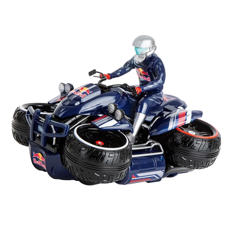 Red Bull steht für jede Menge Action und Speed. Genau das verspricht auch das Carrera RC Red Bull Amphibious Quad Bike. Das rasante Offroad-Gefährt mit den großen Reifen zeigt nicht nur an Land, sondern auch im Wasser, was in ihm steckt. Mit dem rasanten Quad startest du in spannende Off-Road-Fahrten, egal wohin du möchtest und beeindruckst deine Freude mit jeder Menge Action.