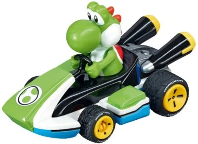 Marios treuer Weggefährte Yoshi darf beim lustigen Kartrennen auf der superschnellen Carrera Autorennbahn nicht fehlen. Der freundliche Drache hat schon im Kart Platz genommen und rast dem Abenteuer entgegen. High- Speed und rasante Kurven: So macht das Rennen richtig Spaß. Schafft Yoshi auch den waghalsigen Looping? Die Spieler werden fest die Daumen drücken. Denn wer das Rennen gewinnt, wird am Handregler entschieden. Das Carrera GO!!! Mario Kart™ 8 Slotcar Yoshi im Maßstab 1:43 begeistert durch eine originalgetreue Verarbeitung.