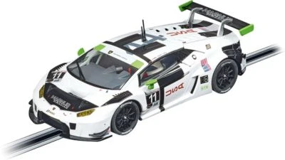 Mit Vollgas zum Sieg! Mit diesem Lamborghini Huracán „Magnus Racing, No.11“ von Carrera kommt ein Flitzer der oberen Klasse auf die Bahn. Das Design mit dem beeindruckenden Heckspoiler ist dem großen Vorbild detailgetreu nachempfunden und ist auch auf der Carrera-Rennstrecke ein richtiger Hingucker. Rasante Rennfahrer Action mit guter Kurvenlage sind mit dem Lamborghini garantiert.