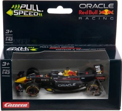 Für alle Nachwuchs-Rennfahrer*innen kommt mit diesem coolen Flitzer ein starker Kandidat mit Aussicht auf den Sieg! Mit dem CARRERA Pull & Speed – F1 Red Bull „Verstappen“ geht es auf die heimische Piste. Der starke Rückzugsmotor macht es möglich. Leicht drücken, zurückziehen und loslassen. Das Fahrzeug ist mit einem Freilauf nach vorne ausgestattet und ist ein richtiger Hingucker im Formel 1 Design.